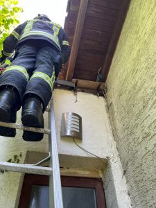Am Freitagmittag wurde die Feuerwehr Gummersbach mit dem Stichwort Tier in Not nach Dieringhausen alarmiert, eine verletzte Katze hatte sich unter dem Hausdach ihrer Halter verkrochen. Das Dach wurde mittels Säbelsäge geöffnet, um Zugang zu dem verletzten Tier zu bekommen. Durch die Feuerwehr und den Halter wurde die Katze gerettet, aufgrund der schweren Verletzung wurde sie umgehend in eine nahegelegene Tierklinik gebracht.