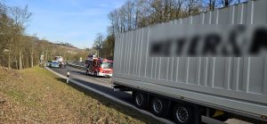 Damit die Betriebsstoffe abgestreut und ein weiteres ausbreiten verhindert werden konnte, wurde die B256 für die Dauer der Maßnahme in Fahrtrichtung Wiehl voll gesperrt.